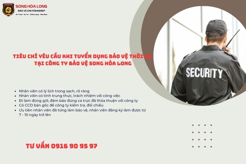 Tiêu chí yêu cầu khi tuyển dụng bảo vệ thời vụ tại Công ty Bảo vệ Song Hỏa Long